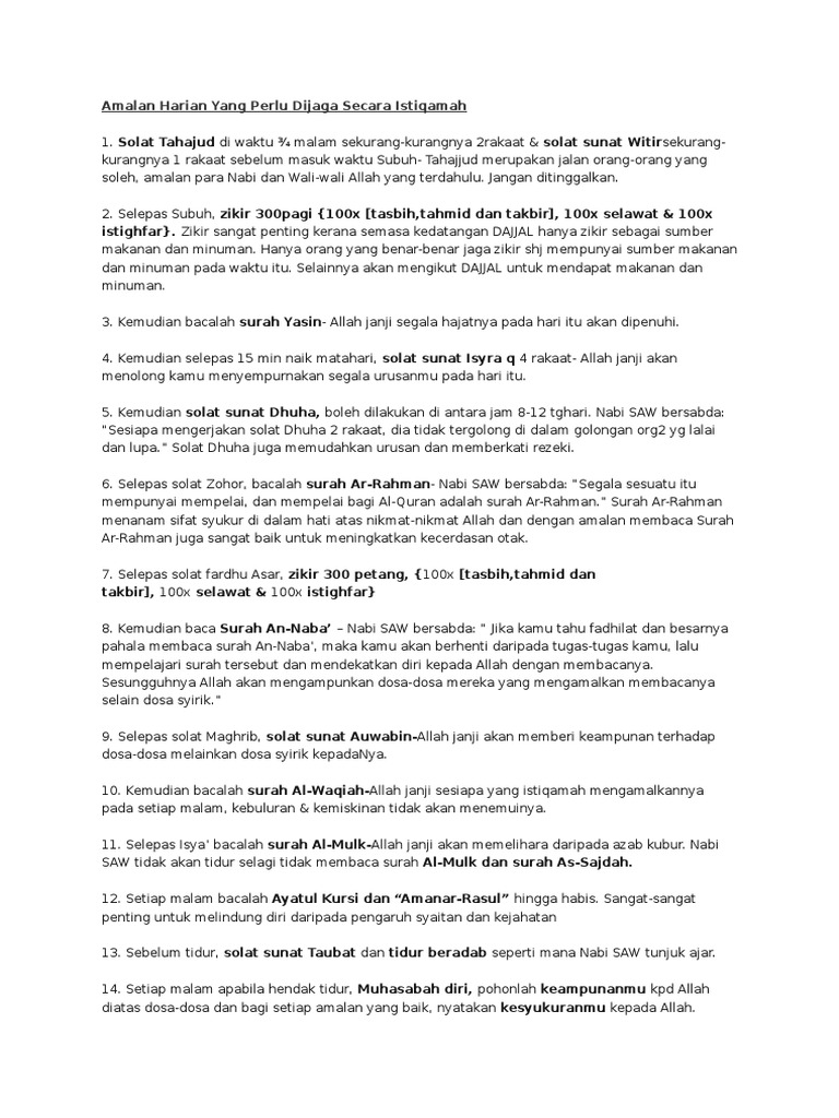 Sebagaimana dalam hadits sahl bin sa'ad radhiallahu anhu bahwa nabi shallallahu alaihi wasallam bersabda dan sungguh amalan itu ditentukan dengan penutupannya. You can choose the 10 surah amalan harian offline apk version that suits your phone, tablet, tv. Dalam banyak riwayat dikatakan tentang keutamaan hari jumat. 1.al fatihah 7 x kepada nabi muhammad.saw.para nabi dan rosul,para auliya dan pada muslimin muslimat. Berisi amalan harian yang bisa diamalkan sehari2.
