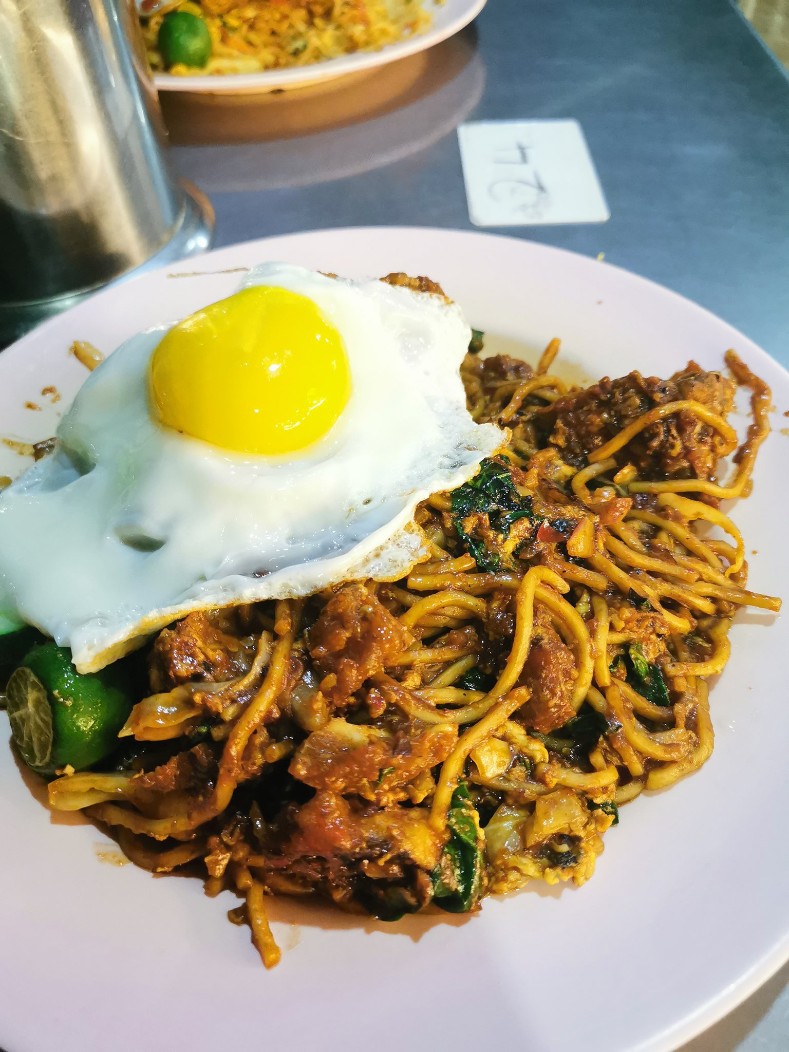 Myr5.00 kuey teow goreng mamak special. And order telur mata for mee goreng. (7 tips) Mee goreng telur mata special. Kuey teow goreng daging mamak. Maggi goreng double + telur mata + ayam goreng + teh o ais limau.